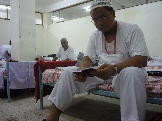 Lepas itu aku dan isteri solat zuhor dan jamak asar secara bergilir di tempat kecil yang disediakan. Masih tidak dapat berita bila akan bertolak. Ada yang cuba menghubungi TH, tetapi apa yang TH boleh lakukan. Memasing kelihatan keletihan menunggu, tidur dengan gaya masing-masing. Nampak tidak sopan pulak jemaah Malaysia dipandangan jemaah negara lain yang turut menunggu di situ.