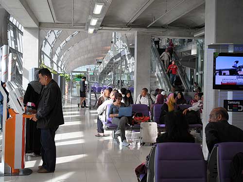 Kemudian berehat di ruang menunggu. Menerusi dinding kaca bangunan, kelihatan kesibukan lapangan terbang. Terdapat dua terminal yang menyediakan kemudahan internet secara percuma. Aku sempat juga mencubanya. Begitu juga dengan jemaah lain. Ok, biasa sahaja, cuma kekok dengan track-ball mouse yang digunakan.